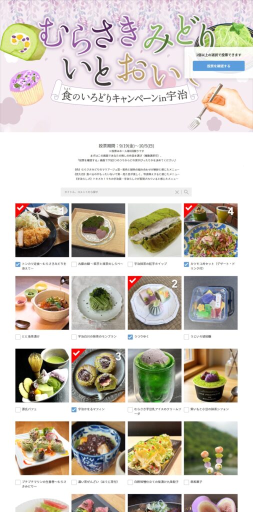 本キャンペーンでは、「色」「見た目」「宇治らしさ」の3つの賞ごとの視点で作品を評価できるため、参加者の投票体験がより深まり、企画全体の魅力も高まります。