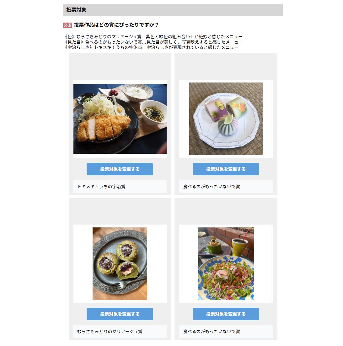 本フォームでは「複数の賞に対して、それぞれ異なる作品を投票する」ことも可能です。