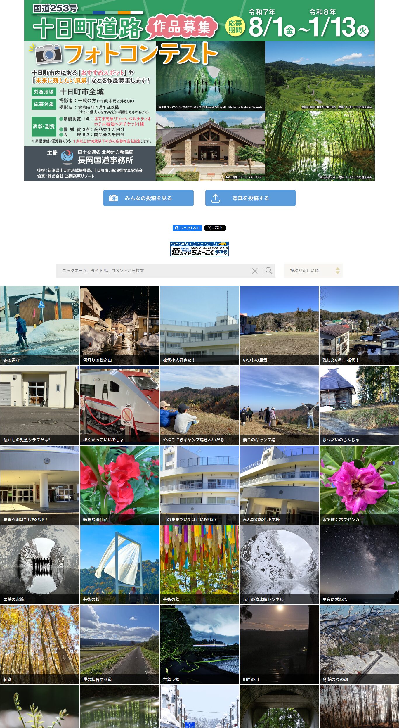 応募作品は国道253号「十日町道路」の広報に活用され、優秀作品には宿泊チケットや商品券が贈られます。